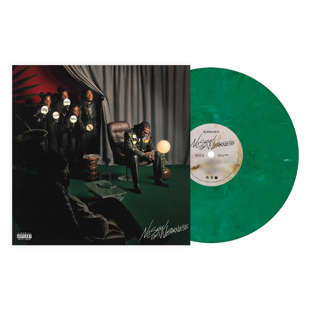 Burna Boy’s No Sign Of Weakness album pressed on eco-jade vinyl. Exclusively available on Burna Boy’s Official Webstore.